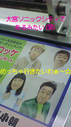 それに気付き、思わずパシャリ☆大宮のソニックシテイで3月にあるみたいです!誰かモノマネ好きな方、私のお供に付き合って下さい(笑)てか、S氏を誘ってみようかな(笑)
