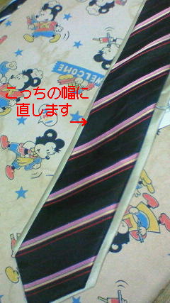 普通のネクタイの幅より少し細くして欲しいと、依頼を受けました。