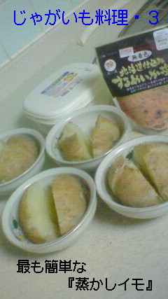 私は朝からジャガイモと睨めっこ。ご近所さんから数日前に頂いたジャガイモなのですが、これがまた大量でして(汗)なのに婆様ったら一つも調理してなくて、気付いたら芽が出つつあったので、こりゃせっかく頂いたのに勿体無い!と思い、ここ2~3日で調理仕切ってやろうじゃないの!!と断然燃えている訳です。