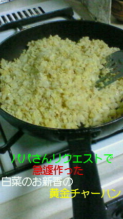 チャーハンはパパさんのリクエストで晩御飯中に作りました。