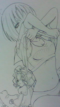 昨日から今朝にかけて描いてたイラスト2枚は、今まで「萌絵」しか描いてなかったせいか鬱憤晴らしし過ぎて、最初はヤバイくらい百合になってしまって、途中「しまった!挑発過ぎるっ( ̄□ ̄;)」ってなって3回ほど描き直してやっと描き上がった訳です。とりあえずグラビア風な巴とノリです。(画像はカテゴリー「同人」の方に載ってます)