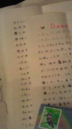 携帯もメールもあるこの時代に手紙です。わざわざ手紙なんです!高校を卒業してから、ずっと年に2回は少なくても手紙が届きます。年賀を入れると3回以上かなぁ…?平均枚数は10枚数前後。この大量な枚数の手紙の中に、プリクラや、お手製のプレゼントが入ってる事も多く、普通サイズの封筒の中によくコレだけ詰めたなぁιと感心しちゃうくらい。封筒はハち切れんばかりに、子峰家のポストに毎回届きます(苦しそうな封筒)。