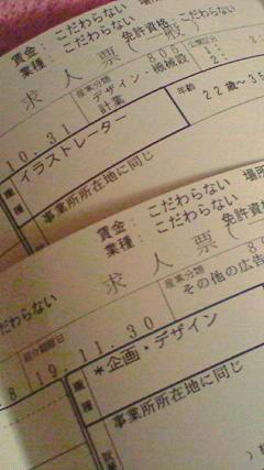 一方私は、イラストレーター・美容師で検索をかけ、パソコンらしき機械に向かいながら、ハラハラ・ソワソワの45分間。機械怖いよ~(泣+汗+焦)!が心の叫び(ΩÅΩ;)そして、2枚ほど求人票をコピ☆