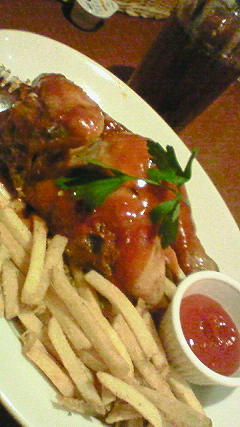 らしくもなくお肉が食べたくて、夜メニューのローストチキンを頼んで食べました。