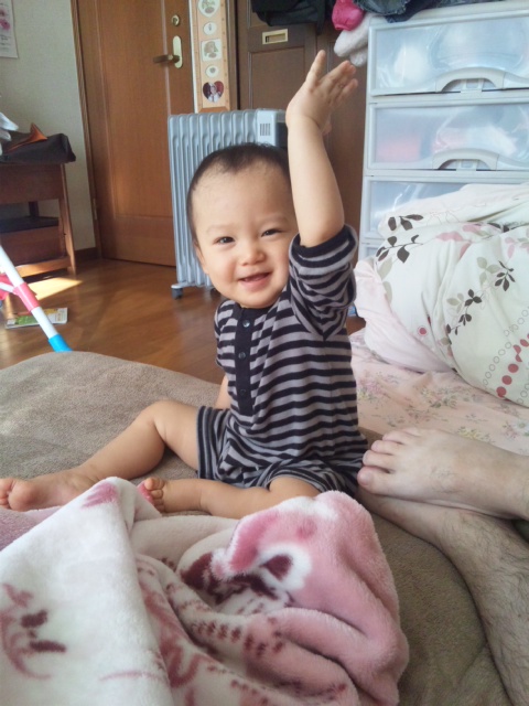 お腹の中にいた時の胎動を考えると、わりと寝ない子で足もバタバタ動かしていたなぁ~、と思います。