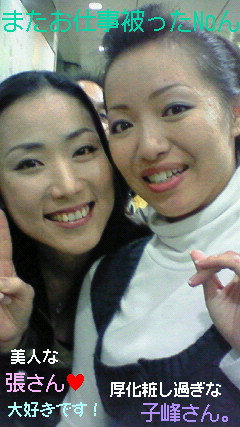 そして素っぴんだったのでメイクをしようと思い街灯の下でメイクをし、撮影に挑んだわけですが…待機中に張さんと一緒に記念写メ。そしたらメイクがめちゃくちゃ濃くて新宿2丁目系、もしくは宝塚系になっていてビックリ(恥)