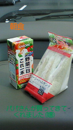 お腹空いたなぁ…なんて助手席で睡魔と戦っていたら、何と!パパさん、サンドウィッチとドリンクの用意をしてくれてました☆