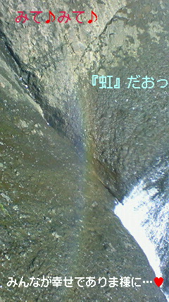 袋田のトンネルを通り抜け、目の前に現われたのは、マイナスイオンたっぷりの滝。そして下を覗き込んでみたら、小さな虹が…。