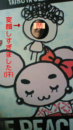 顔ハメのパネルがあったので、とりあえず変顔でアゴをしゃくって記念撮影。