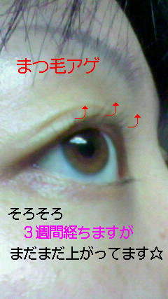 で、3週間経とうとしていますが、まだまだアゲアゲなまつ毛ちゃんです。
