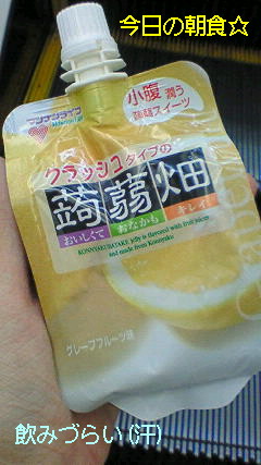 とりあえず、蒟蒻ゼリーの朝食。