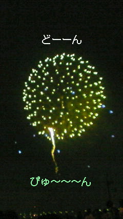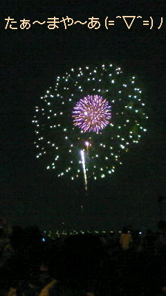 花火を写メにおさめようと必死。でも花火は生きてるので撮るのが大変( ̄ω ̄;)何とかネバって花火の写メを撮りました。アップしておくので見て下さい☆