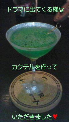 2杯目は、バーテンさんにイメージを伝えて作って頂きました。テーマは『ドラマに出てくる様なカクテル』(笑)名前は何だか解りませんがミントの味がなんとも爽やかでした。