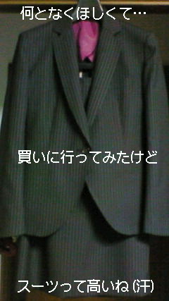 ニッ●ンの3点セットで壱万円しないイメージで買い物に行ったのが間違いでした(焦)デパート、ファッションセンターは壱万円以上。しかもデパート、ファッションセンターに素敵なデザインのスーツなんて置いてあるはずがなく。もうそれなら、ちゃんとしたスーツ屋さんで気に入ったスーツを買おうと思い、某スーツ屋さんに行きました。