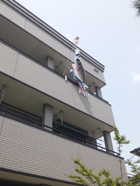 雨とパパの都合で鯉のぼりを泳がすのが今日になっちゃった…