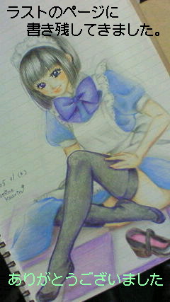 美化しまくってる自画像ですが、変わったメイドが居たなぁ…と忘れ去れないように。そんな思いと、ありがとう。の気持ちを込めて描いてみました。