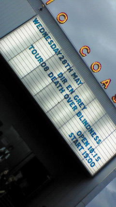 DirのLIVEって大体雨の日が多いです。朝、降ってなくても待ち時間に降りだすとか、ヒデサミの時も少し晴れていたのに、彼等が雲を呼んじゃって途中小雨が…てなこともあったり(笑)何でしょうね?重低音だからなのでしょうか?それとも曲の原点が『痛み』なので、空もそれを感じ取って泣きだしているのでしょうか?