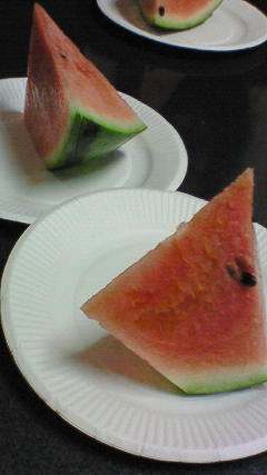 初物で食べたスイカが甘くて、おいスィかったなぁ~(*´∀`*)二つももらって食べちゃった♪